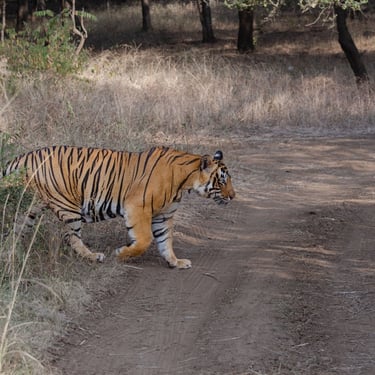 Ranthambore Tiger Reserve is a striking blend of wildlife and history, where nature has reclaimed the remnants of a once-powerful kingdom. Spread across dry deciduous forests, rocky plateaus, lakes, and grasslands, the landscape is marked by ancient ruins, crumbling palaces, temples, and watchtowers that rise from the forest floor. Tigers are often seen moving through these historic settings—resting beside stone walls, crossing paths beneath fort ruins, or patrolling lakes framed by centuries-old structures—creating some of the most iconic wildlife scenes in India. High visibility and open terrain make wildlife behavior easier to observe, while the setting adds a sense of time and scale rarely found elsewhere. Alongside tigers, Ranthambore is home to leopards, sloth bears, hyenas, crocodiles, and diverse birdlife. The reserve feels bold and unmistakable, offering an experience where ancient ruins, palaces in decay, and powerful wildlife exist side by side.