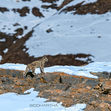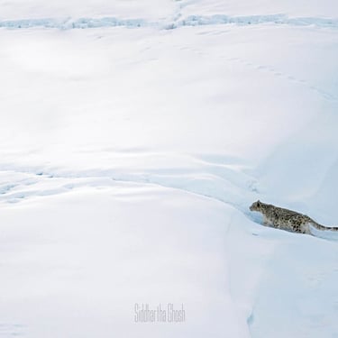 snow leopards during winter. At elevations between 3,800 and 4,800 meters (11,000 to 14,000 feet), the terrain is rugged, open and dramatic. Carved by glacial valleys and steep ridgelines. During winter months (December to March), snow leopards descend to lower altitudes following their primary prey species, especially blue sheep (bharal). This seasonal movement significantly increases the probability of sightings.